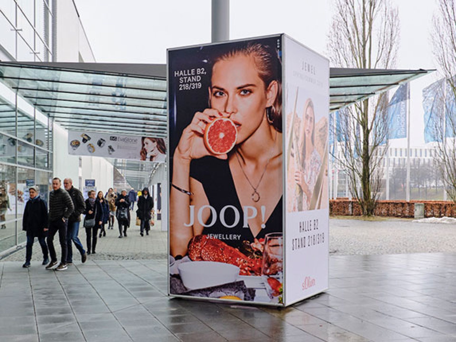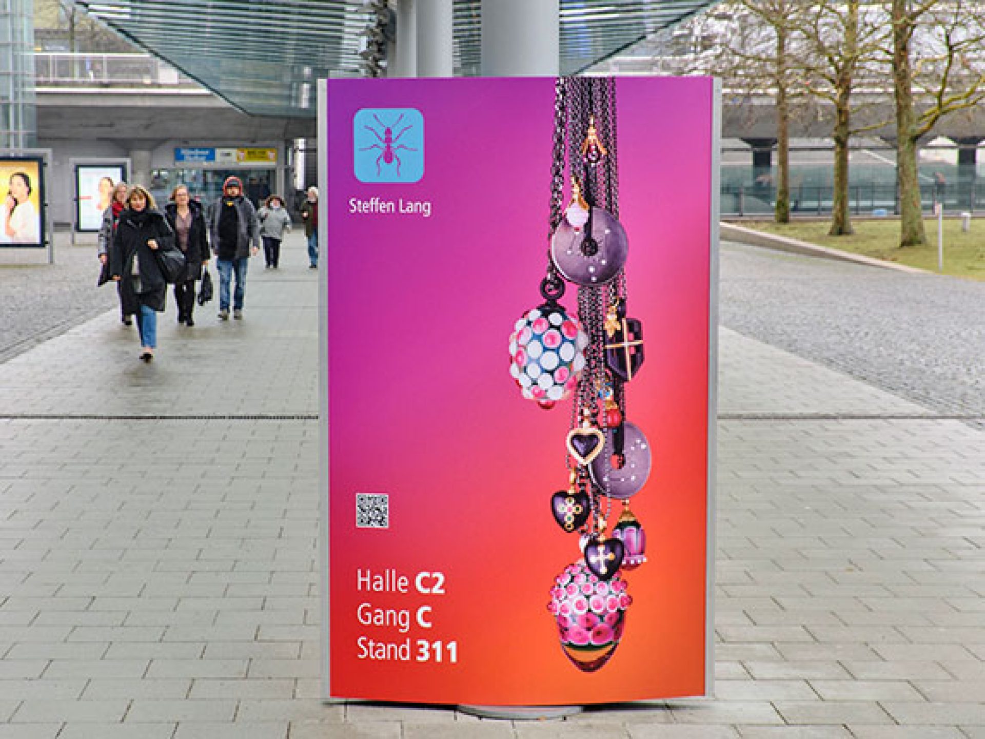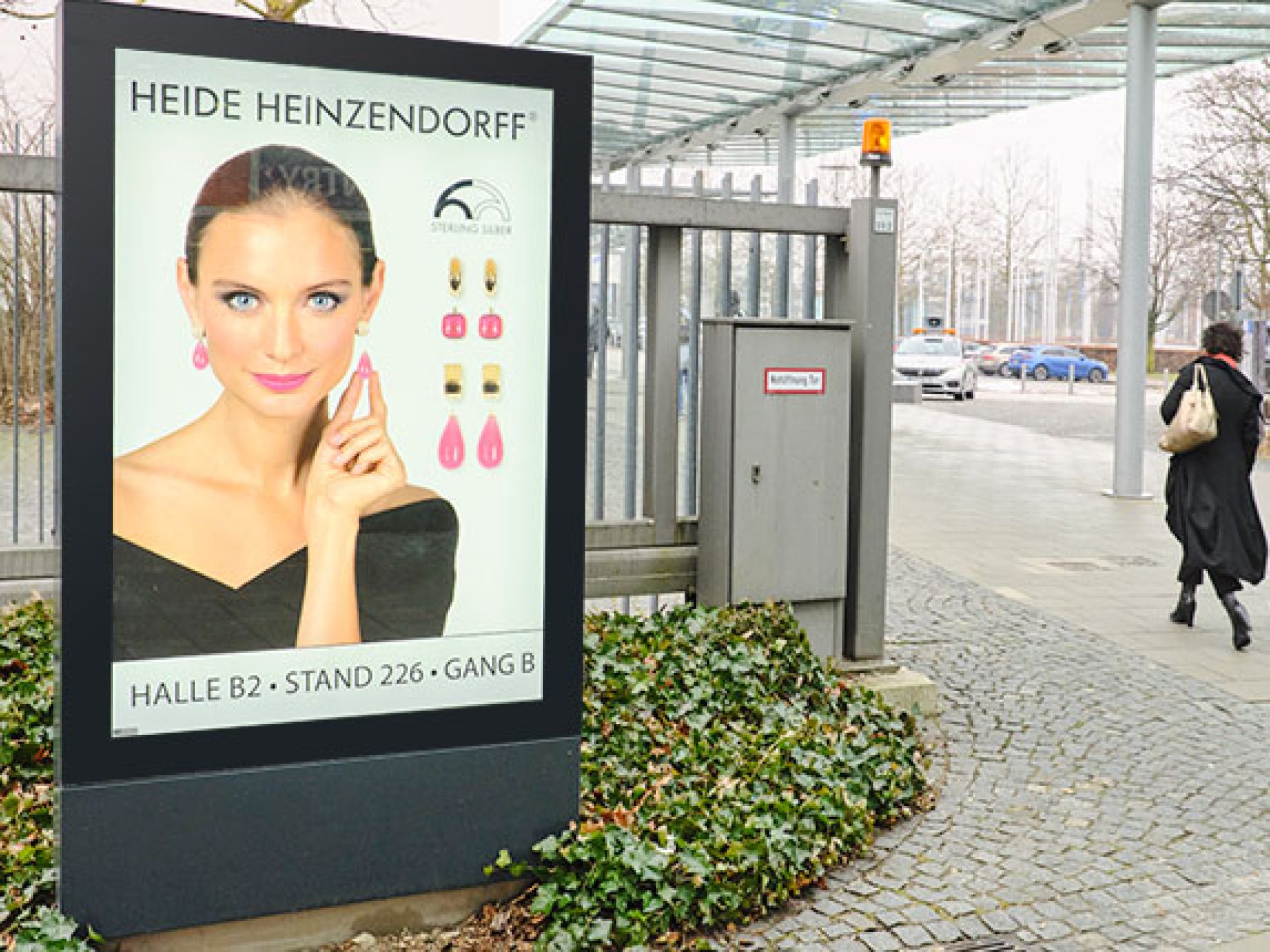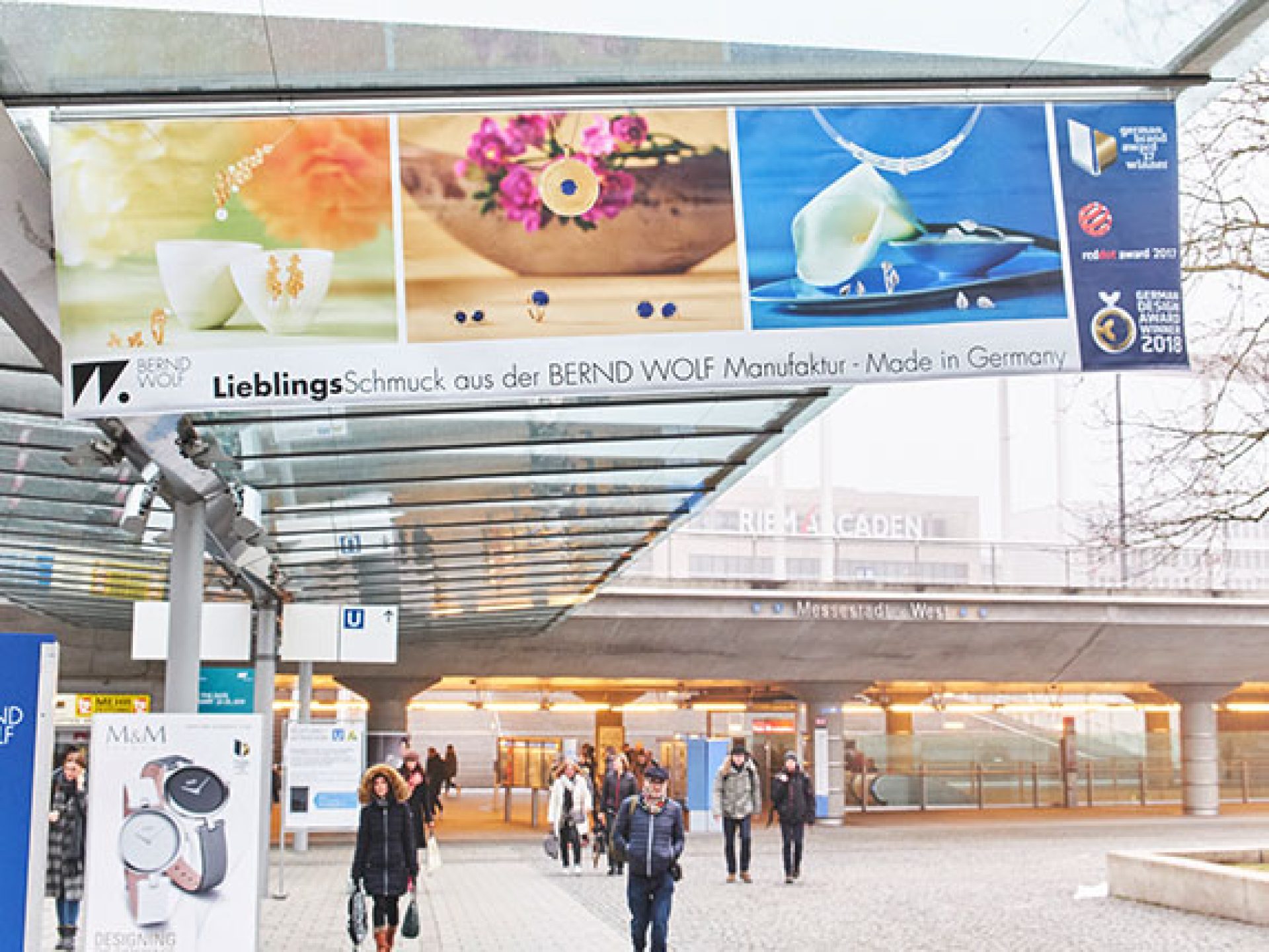 Location: Between underground station and Entrance West or parking garage and Entrance West